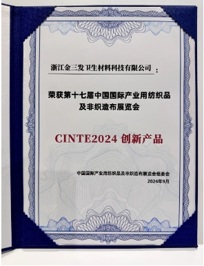 „Green Super Soft Sandwich Spunlace Nonwoven“, ktorý predložila spoločnosť Zhejiang Kingsafe Sanitary Material Technology Co., Ltd., vyhral ekologický vývojový inovačný produkt.